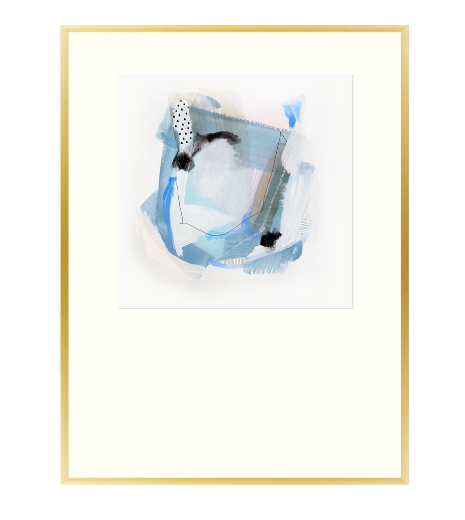 *note: framing depicted is digitally imposed, therefore it is a representation of the frame included, but not exact. See the last photo for actual frame, a thin brushed aluminum in a pale gold shade.